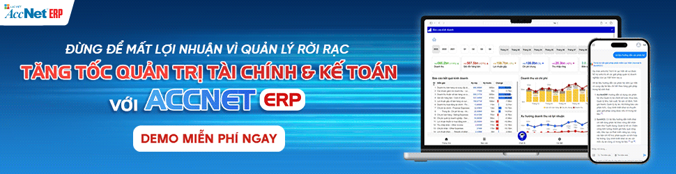 PHẦN MỀM KẾ TOÁN ACCNET ERP TÍCH HỢP “TRỢ LÝ TÀI CHÍNH AI” Với 7 phân hệ lõi tích hợp từ kế toán, bán hàng, mua hàng, sản xuất, kho vận, nhân sự đến phân phối, phần mềm quản lý doanh nghiệp AccNet ERP tạo nên một hệ sinh thái quản trị tài chính – điều hành khép kín, đồng bộ thông tin xuyên suốt: TÍCH HỢP TRỢ LÝ TÀI CHÍNH KẾ TOÁN AI - RA MẮT 2025 AccNet ERP là một nền tảng công nghệ mở, tích hợp các giải pháp tiên tiến như: DOANH NGHIỆP ĐƯỢC GÌ KHI TRIỂN KHAI ACCNET ERP? ✅ Quản lý tài chính chủ động – Không còn “bơi trong số liệu rời rạc” ✅ Hiệu quả rõ rệt khi ứng dụng trợ lý tài chính AI ĐĂNG KÝ NHẬN DEMO NGAY Vui lòng điền các thông tin vào form chúng tôi sẽ liên hệ lại với bạn trong 24h làm việc. KHÁCH HÀNG TIÊU BIỂU ĐÃ VÀ ĐANG TRIỂN KHAI ACCNET ERP